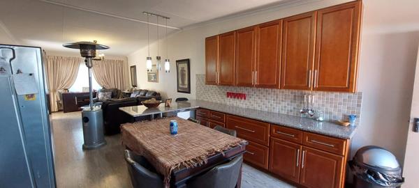 The heart of the home is the open-plan lounge and dining area, seamlessly connected to a modern kitchen designed for the discerning chef. With elegant granite countertops, a breakfast nook, and a walk-in pantry, this kitchen is both functional and aesthetically pleasing. Equipped with an under-counter oven, hob, and extractor fan, meal preparation will be a delight in this stylish space.