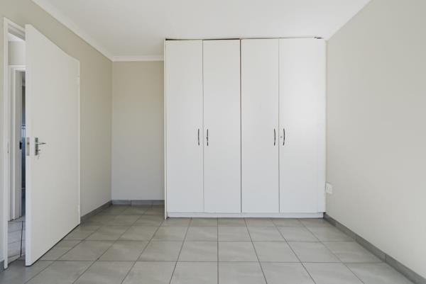 The unit boasts two generously sized bedrooms with built-in cupboards, a full bathroom, and a bright, open-plan living area that enhances the sense of space. The kitchen is well-equipped, with plenty of storage, making meal prep a breeze.