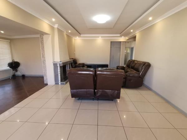 Outside, the property is designed for entertaining with a sparkling swimming pool, lapa, and built-in braai, perfect for hosting friends and family. A lock-up garage ensures secure parking.