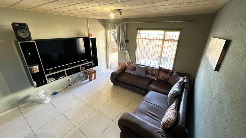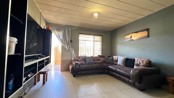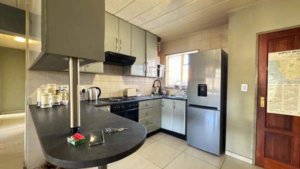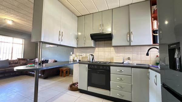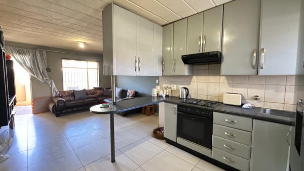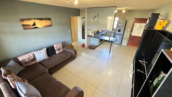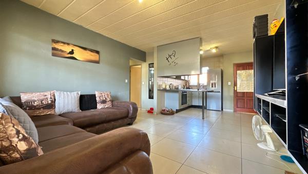 Step into a beautifully tiled open-plan lounge that flows seamlessly into the kitchen, creating a welcoming and spacious area for family time and entertaining guests. The kitchen itself boasts ample countertop space, built-in cupboards, and a layout that allows for easy movement and functionality perfect for those who love to cook.