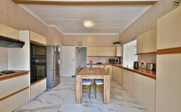 Outdoors, an entertainers dream awaits with a sparkling swimming pool, a large covered entertainment area, and a beautifully landscaped garden perfect for children and pets. A double automated garage, additional guest parking, and top-notch security including electric fencing, burglar bars, and a remote-controlled gate provide both convenience and peace of mind.