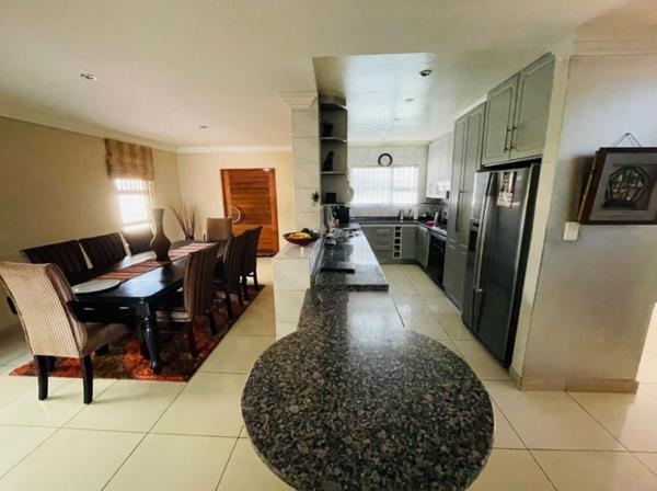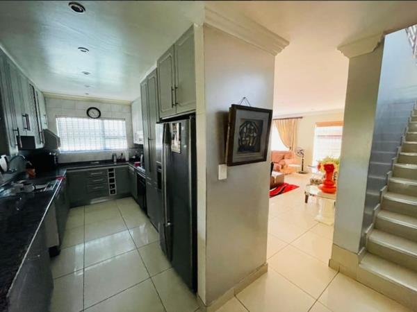 This spectacular property offers the perfect blend of luxury, space, and endless possibilities for a growing family located in Meredale, Johannesburg. The property offers five spacious bedrooms with built in cupboards and tiled flooring. The main bedroom offers his and hers walk-in-closets leading to the on suite bathroom with shower, bath, basin and toilet. The guest bedroom located downstairs has on suite bathroom with bath, shower, basin and toilet. There are two additional stunning full bathrooms one located downstairs and another one upstairs.