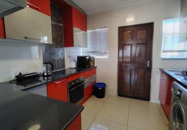 Security is prioritized with robust features such as burglar bars and security gates offering peace of mind. Parking includes a single garage and two additional open parking spaces. The property is also equipped with fiber connectivity ensuring high speed internet access for work and leisure.