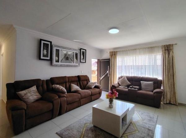 Step into this inviting townhouse offering three spacious bedrooms with built-in cupboards, including a main bedroom with en-suite bathroom. The home features a bright and airy open-plan lounge and dining area, flowing seamlessly into a well-equipped kitchen with plenty of storage and workspace.
