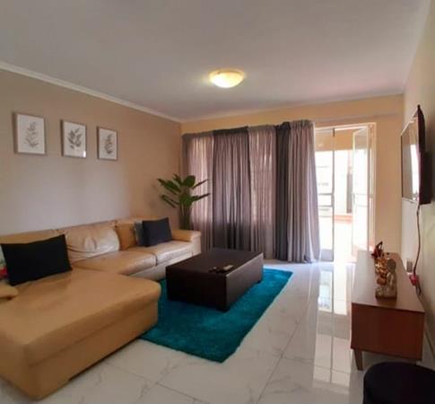 The bedrooms are thoughtfully designed with built-in cupboards, tiled floors and blinds, providing ample storage space and accommodating queen-sized beds effortlessly. The open-plan lounge and dining room radiates spaciousness and versatility, seamlessly flowing into the kitchen. The kitchen boasts built-in cupboards, an electric stove, under-counter oven, washing machine connector facilitating effortless meal preparation and culinary creativity. The two bathrooms offer a bath, basin, toilet, and shower, offering a sanctuary for relaxation and rejuvenation.
