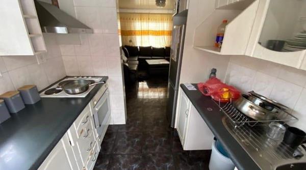 Practical Kitchen Equipped with ample cupboard space and easy access to the living area.