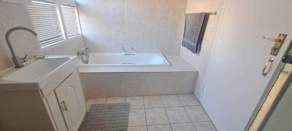 The bedrooms are generously sized, each with built-in cupboards, ensuring comfort and storage space. The bathroom is well-kept and ready to meet the needs of a busy household.