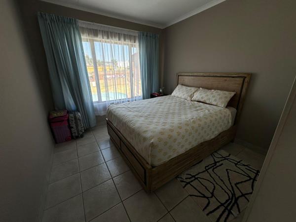 The home features a spacious open-plan lounge and dining area that flows seamlessly onto a private balcony with views over the complex a great spot to relax after a long day. The kitchen is neat and functional, fitted with plenty of cupboard space and room for essential appliances.