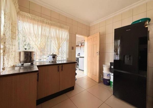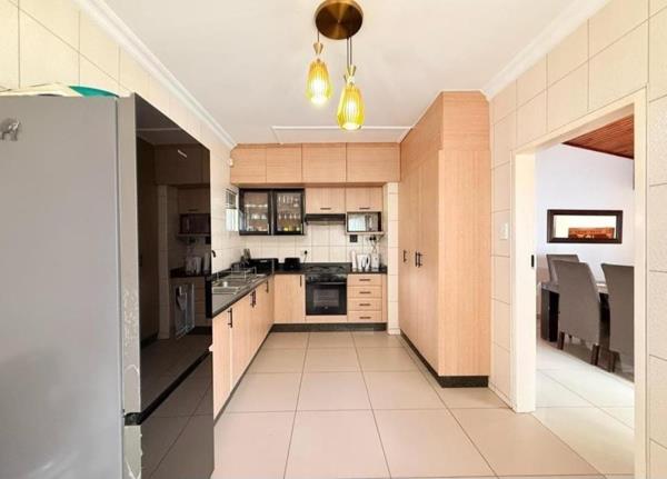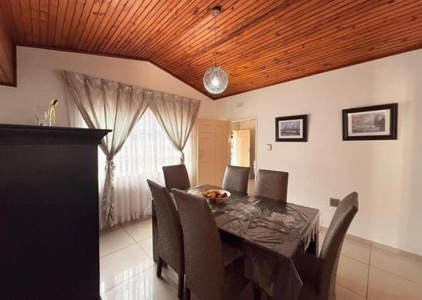 The inviting lounge is warm and welcoming, creating a bright, airy atmosphere for family gatherings or relaxed evenings. Outside, the property comes alive with a sparkling private swimming pool and a charming lapa, perfect for entertaining guests or enjoying meals with family. The spacious patio extends the living area and offers an ideal spot for morning coffee, evening sundowners, or simply relaxing in the serene garden.