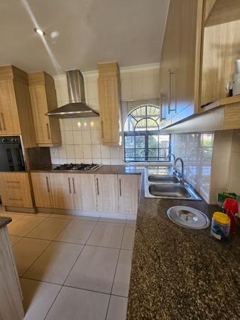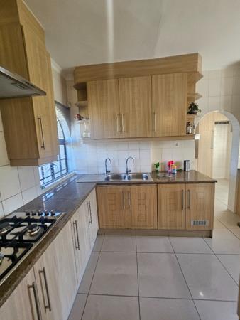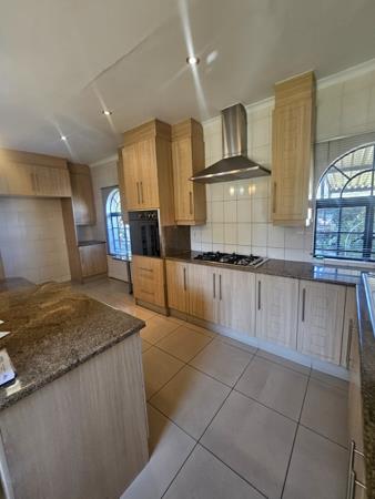 This gorgeous home boasts four luxurious bedrooms with built-in wardrobes. The main bedroom comes complete with an onsuite bathroom, a dressing area and a private study/office space that allows you to unwind in your own personal space. The second modern styled bathroom offers its own elegant style. The beautiful kitchen is equipped with a gas stove, hob, fitted deep fryers, food warmers, fitted cupboards for storing all your utensils, modern appliances and has a separate scullery leading to a cozy dining room area. Relax in style in the warm toned, massive open plan lounge area.