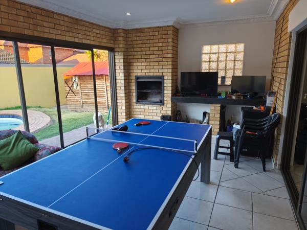 The patio features a built-in braai and overlooks a sparkling pool, lush green grass and beautifully maintained backyard garden, making it a true outdoor haven. Whether you''re hosting friends or enjoying a quiet evening at home, this space has everything you need.
