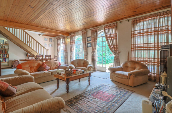 Outside you will enjoy the sliding doors that open onto the patio both morning and night which looks out onto the well maintained garden and swimming pool. Upstairs you will find a spacious entertainment area. Plus there is staff accommodation. The property also has good security and an electric fence.