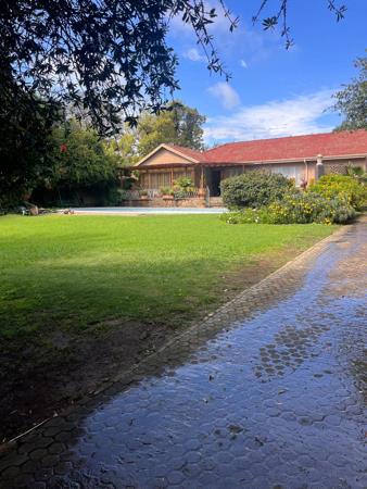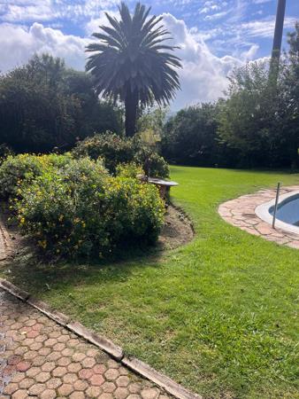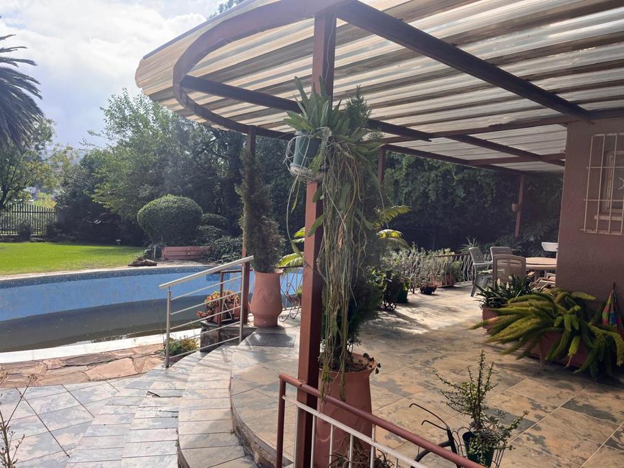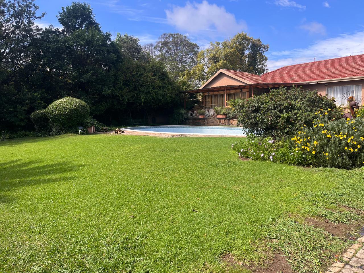 The living areas are designed for both relaxation and entertaining, with a welcoming dining room, a functional kitchen, and a warm entertainment area that flows effortlessly onto a covered patio. From here, you can enjoy views of the sparkling swimming pool and the beautifully maintained garden, with its lush, green grass creating a peaceful and inviting atmosphere. Not only that but this home has a Borehole