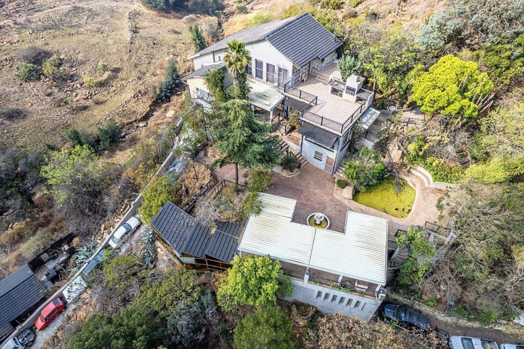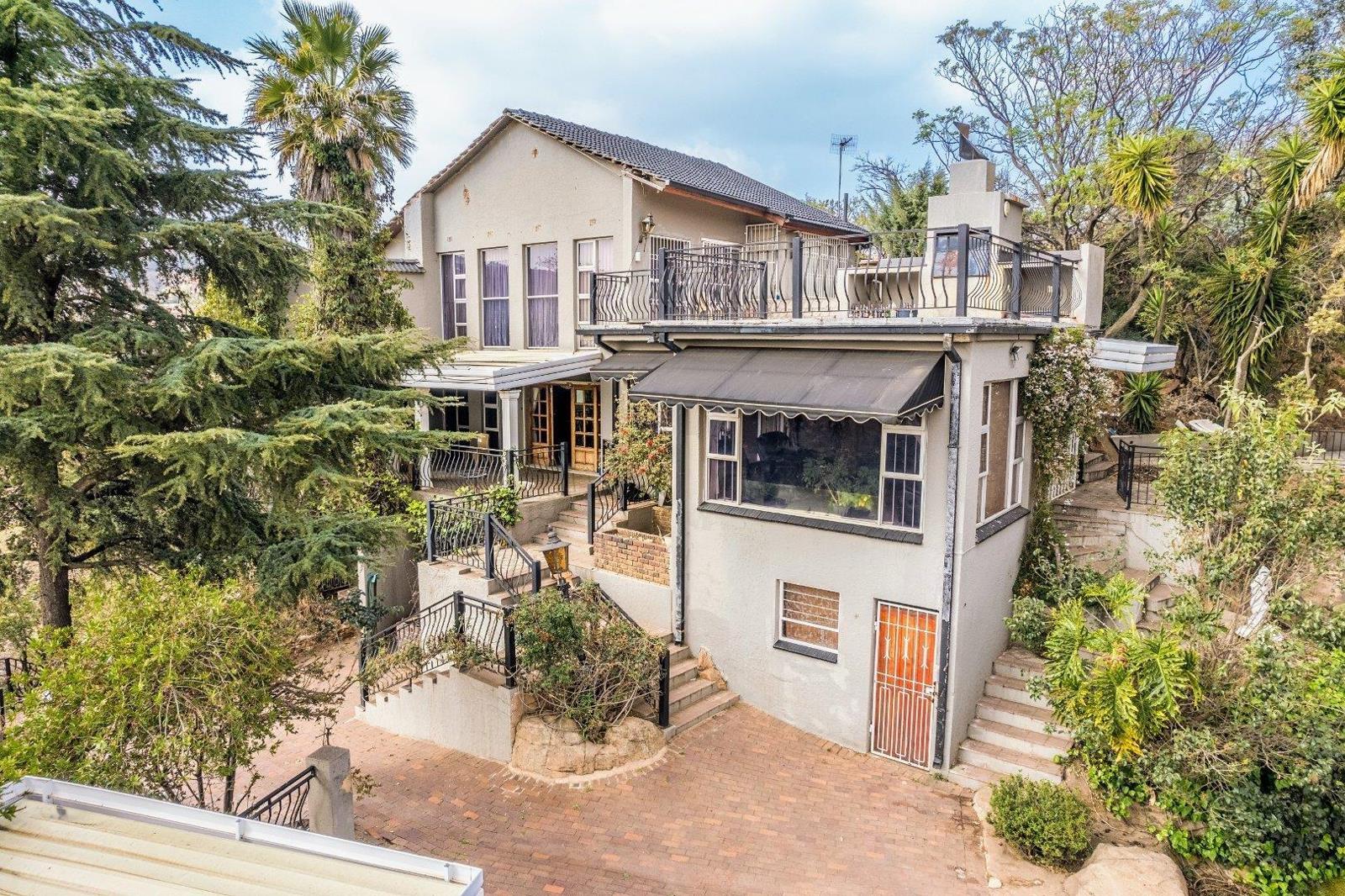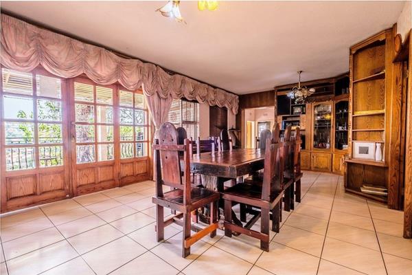 This very large home is as unique as they come! Built on several levels, on a large double stand having two entrances. This home home has an abundance to offer, being six bedrooms, three bathrooms (main-en-suite), two lounges, study, entertainers dining room and gourmet kitchen, offering hob stove, granite worktops , eye level oven, scullery and breakfast nook and laundry. There is a large entertainment room downstairs - equipped with a kitchenette and jacuzzi. You can easily park three to four cars in the lock up garage and there is sufficient room on both driveways to park additional cars or visitor parking. The swimming pool leads off of one of the three large patios., which offer the most awesome west facing views over the neighborhood and Klipriviersberg Nature Reserve in the background.. In addition there is a one bedroom cottage with it''s own private entrance.