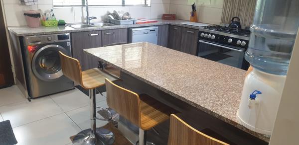 This home offers three spacious bedrooms with built-in wardrobes, well tiled flooring, and two modern bathrooms of which one is an onsuite to the main bedroom and a guest toilet. The stylish kitchen is the heart of this home and the scullery has a washing machine and dishwasher connection.
