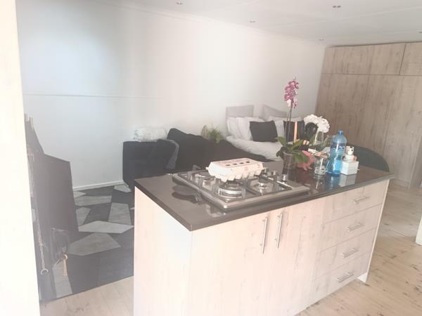 Adding significant value, a separate, compact open-plan flatlet provides exceptional dual-living potential or rental income. This self-contained unit includes a modern kitchen island with an integrated gas hob, built-in wardrobes, light wooden flooring, and a contemporary bathroom with a walk-in shower. Outdoors, the generous 1142 sqm erf boasts a refreshing swimming pool and a charming patio, perfect for relaxation.