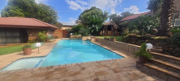 Beautifull patio area overlooking sparkling pool and manicured garden