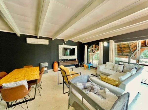 The country-style kitchen includes a gas stove, pantry, and separate scullery, flowing into an open-plan lounge and dining areaideal for everyday living and entertaining.