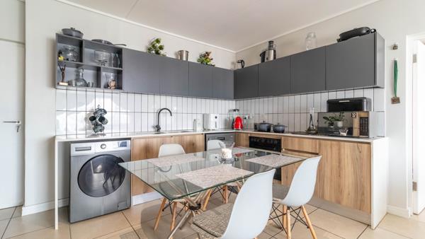 The open-plan kitchen flows effortlessly into a sun-drenched lounge, creating a light and airy space perfect for relaxing or entertaining.