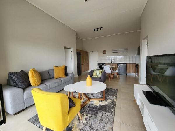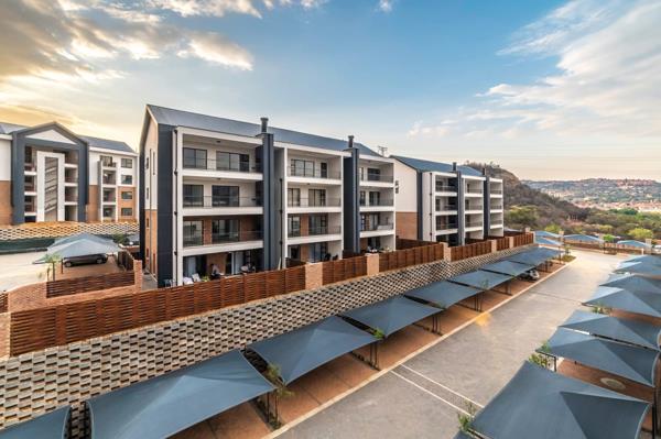 Step inside to find an open-plan living area that flows effortlessly into a stylish, fully fitted kitchen with contemporary finishes and ample cupboard space. The lounge opens onto a private balcony with a built-in braai, ideal for entertaining or enjoying tranquil sunsets while overlooking the lush green belt of the Thaba Eco Nature Reserve one of the most sought-after views in the estate!