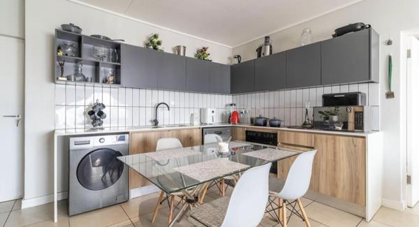The open-plan kitchen flows effortlessly into a sun-drenched lounge, creating a light and airy space perfect for relaxing or entertaining.