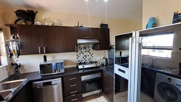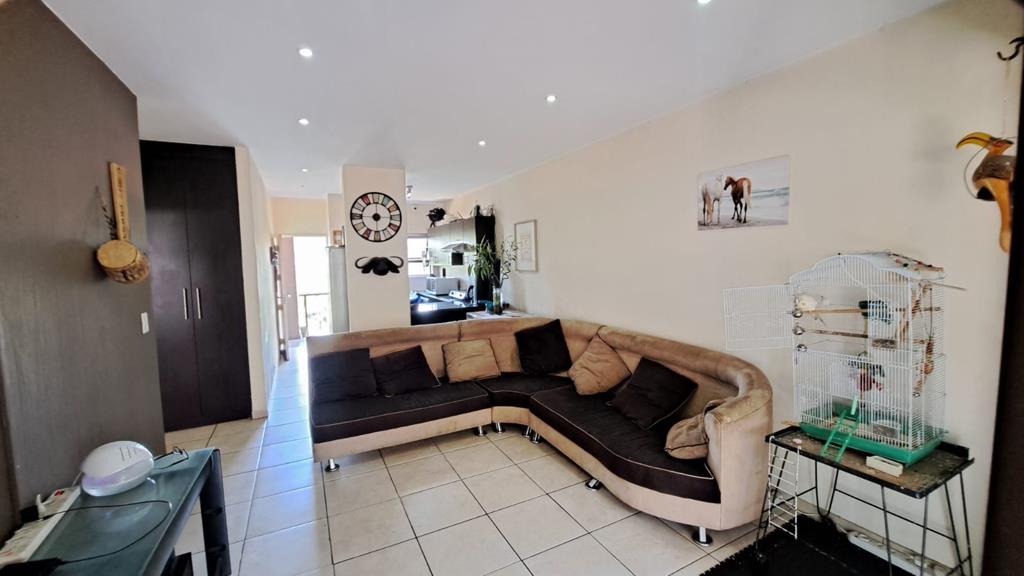 Both bedrooms are generously sized with built-in cupboards, offering a peaceful retreat after a long day. The full bathroom is tastefully designed and well-maintained. The lounge flows out onto a private balcony, perfect for morning coffee or sundowners overlooking the landscaped gardens.