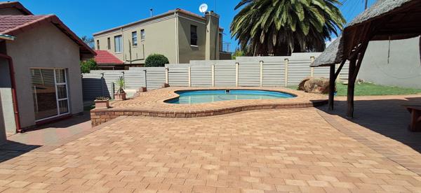 Beautiful garden with sparkling pool and covered patio ideal for weekend braais