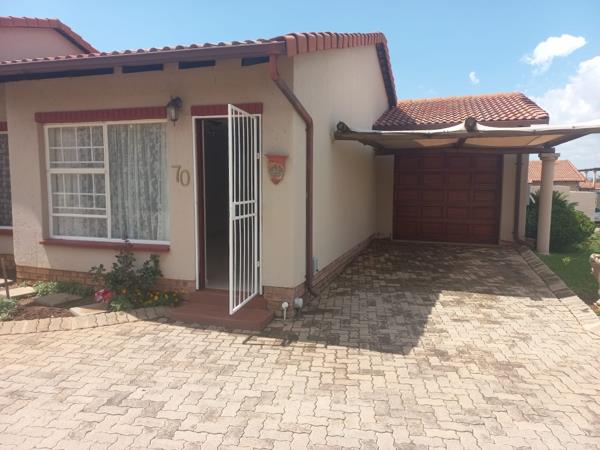 Discover secure and comfortable living in this charming 2-bedroom home, nestled within a sought-after retirement village in Mulbarton, Johannesburg. The property boasts a neat single-story exterior with a secure gated entrance and a paved driveway leading to a covered garage. Enjoy expansive, well-maintained green lawns and mature trees, offering a serene outdoor environment with scenic views. Inside, a bright, open-plan living area features durable tiled flooring and neutral walls. The lounge includes a ceiling fan and ample natural light, while the functional kitchen offers light wood cabinets, granite countertops, integrated oven, hob, extractor fan, and a breakfast bar.
