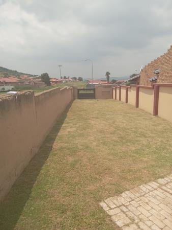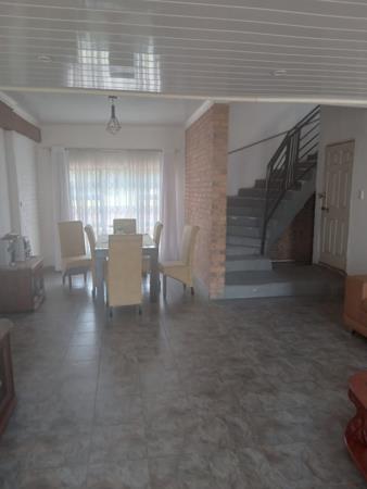This double storey with aluminum windows home boats of 1 that up stairs main bedroom very spacious with an en suite it can be converted into an entertainment area . Downstairs it comes with 3 bedrooms 1 with en suite and BIC open plan lounge dinning room , chefs fully fitted kitchen including the washing machine .There is a storage room outside that can be converted into an outside room . Windows aluminum , its got a double garage ,The yard is spacious .. Call for a viewing appointment . Pre qualification is done....