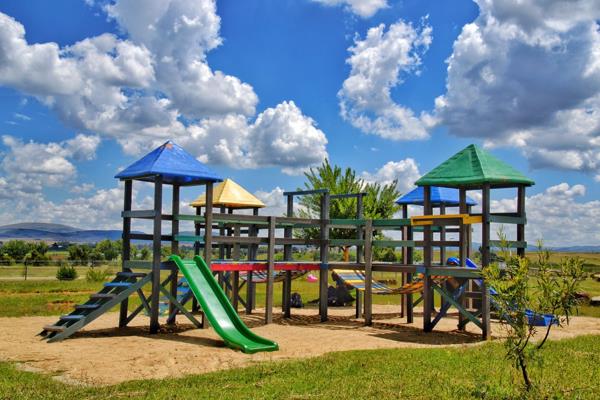 It features a shopping mall, an Engen filling station, playgrounds, a private school, a church, a creche, and fast-food restaurants.