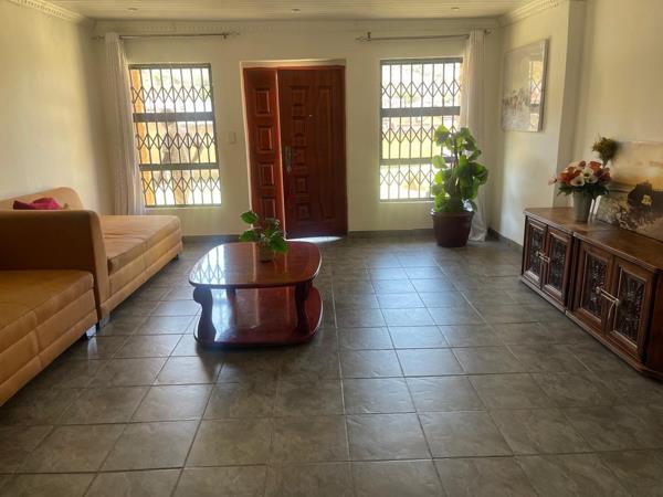 Accommodation includes four well-proportioned bedrooms, providing generous space for family members or guests. With three bathrooms, convenience is assured for a busy household. Each room benefits from natural light, and the presence of security bars extends to the bedroom windows, reinforcing the home''s secure environment.