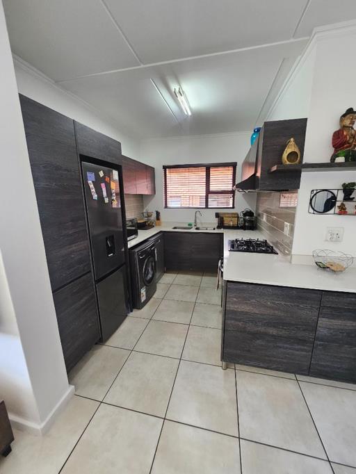 This amazing home boasts three cozy bedrooms with fitted modern wardrobes. All bedrooms come complete with wooden themed tiles which boast a cozy and warm vibe. The bathroom is tiled with coordinating colours. This home has a contemporary styled kitchen with sleek modern counters and high end appliances such as the gas stove with a hob dishwasher and the fitted fridge. The kitchen then leads you to a spacious open plan dining room and open plan lounge area with views of the gorgeous outdoor area.