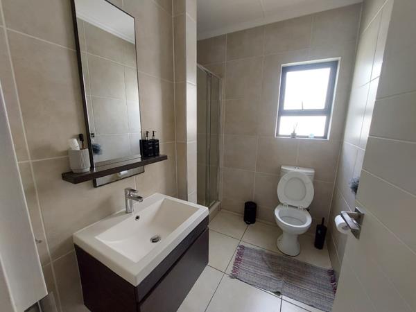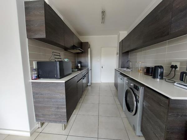 This modern 55 sqm apartment in Oakdene, Johannesburg, offers contemporary living within a secure suburban complex. The appealing architectural design features white facades and red brick accents. Inside, the bright lounge area opens via large sliding glass doors to a private balcony, providing scenic views of rocky hills and the surrounding landscape. The functional galley kitchen boasts dark wood-look cabinetry, white countertops, and integrated stainless steel appliances, including a washerdishwasher, ovenhob, and extractor, all set on light tiled flooring. The apartment includes one comfortable bedroom with a spacious built-in wardrobe and balcony access, ensuring natural light. The modern, fully tiled bathroom features a sleek vanity with storage and a glass-enclosed shower. Residents benefit from two dedicated parking bays and excellent communal amenities, including a refreshing pool and a club house. The complex prioritises safety with 24-hour security, electric fencing, and access gates, providing peace of mind. Fibre connectivity is also available.