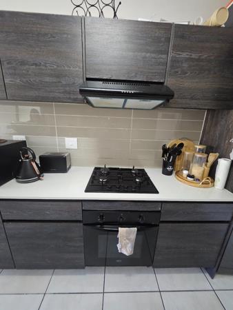 This amazing home boasts one cozy bedroom with fitted Melamine wardrobes, wooden themed tiles which boast a cozy and warm vibe. The bathroom is tiled with coordinating colours. This home has a contemporary styled kitchen with sleek modern counters, high end appliances such as the gas stove and hob. The kitchen then leads you to a spacious open plan dining room and open plan lounge area with views of the gorgeous outdoor area. The home is beautifully tiled and the walls are immaculately painted with welcoming earth tones. The whole property is well sized and seasoned for comfort. This amazing property is well protected with burglar bars, 24 hour security and has an amazing check system.