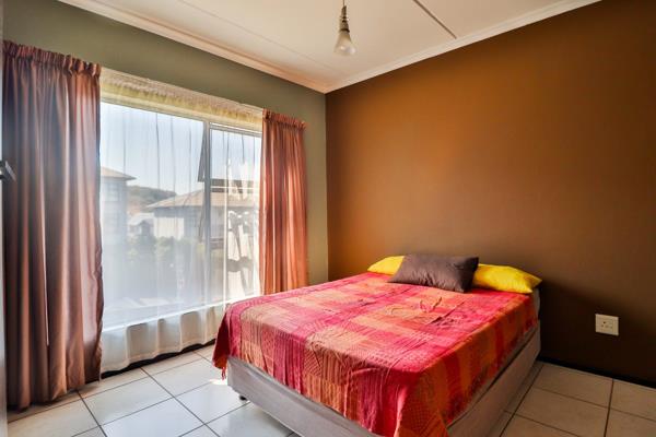 Two well sized bedrooms with dark wood built in cupboards , tiled with blinds. Full bathroom, shower, basin, bathtub , toilet tiled with blinds. Fully fitted dark wood kitchen with ceaser stone tops, open plan lounge and dining leading onto a covered balcony. Sundowner balcony, a space to enjoy, chill and relax.