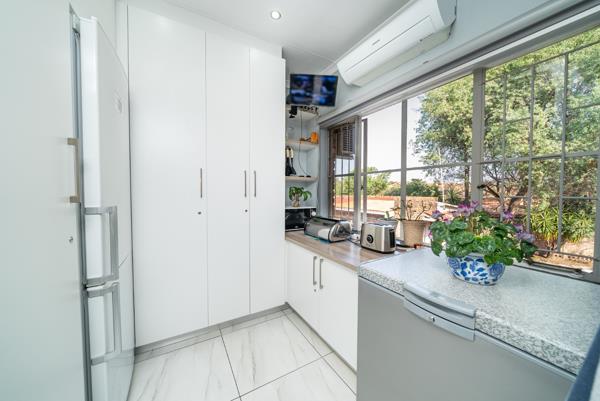 Outside, the property includes a laundry area, domestic quarters, and a versatile office space, ideal for remote work. The meticulously landscaped garden, supported by an efficient irrigation system, offers a peaceful outdoor retreat. For peace of mind, security features include CCTV cameras, burglar bars, an alarm system with outdoor beams, and automated gates.
