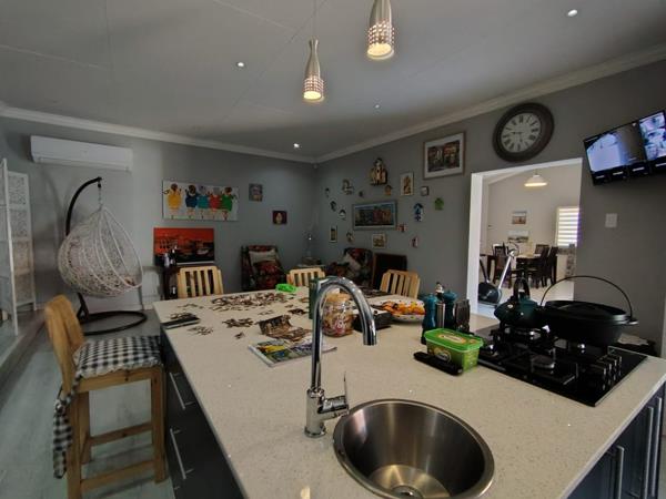 Set on a generous 1089 sqm erf with a substantial 359 sqm under roof, the property features a well-maintained garden, offering a tranquil outdoor space. Enjoy outdoor living and entertaining with a built-in braai. Security is well-addressed with an alarm system and CCTV, ensuring peace of mind. Parking is abundant, with two garages and space for an additional six vehicles.