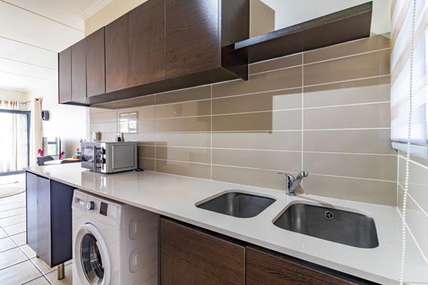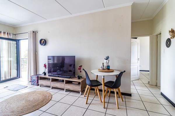 Both bedrooms feature built-in cupboards the main bedroom includes an en-suite bathroom for added privacy. The second bathroom services the guestsecond bedroom with modern finishes. The living area leads out to a generous balcony where you can relax with views over the poolgreen area assuming typical orientation ideal for sundowners or quiet mornings.