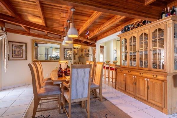 Additional features include underfloor heating in the lounge, dining area, and kitchen, ensuring year-round comfort. Security is top-notch with burglar bars, an alarm system, automated access gates, and an electric fence. The front garden is equipped with an irrigation system, keeping the lush greenery well-maintained.