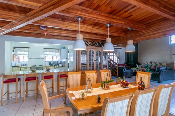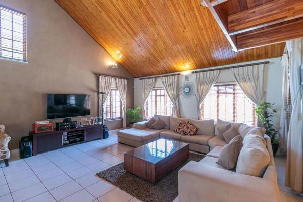 OUTSIDE offers a laundry, domestic quarters with 2 rooms and a bathroom, garaging for 4 cars plus additional Mezzanine floor above Loads of open parking for about 15 cars, large garden and a swimming pool for those entertaining days in the Sun!