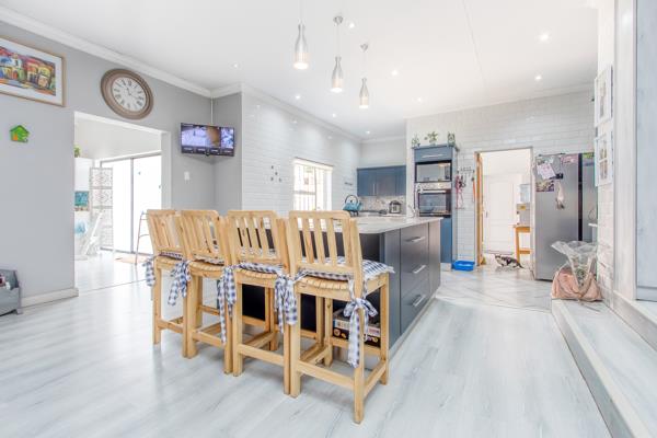 The main house is warm and welcoming, featuring four bedrooms and two bathrooms. One of the bedrooms is set apart at the entrance, making it the perfect home office, studio, or even a private consulting space, complete with its own toilet. The rest of the home flows beautifully into a large open-plan lounge and dining area, filled with natural light. The modern kitchen is a true highlight, fitted with ample cupboards, a gas stove, and a scullery with space for three appliances washing machine, tumble dryer, and dishwasher. With laminated floors throughout the home, tiled finishes in the kitchen, a gas geyser with backup geyser, and pre-paid electricity, this home is completely move-in ready.