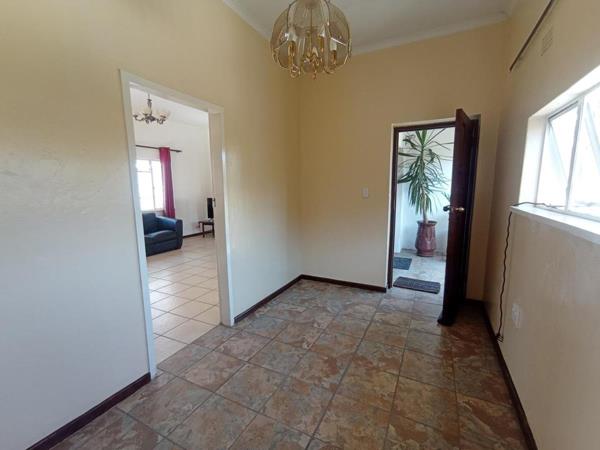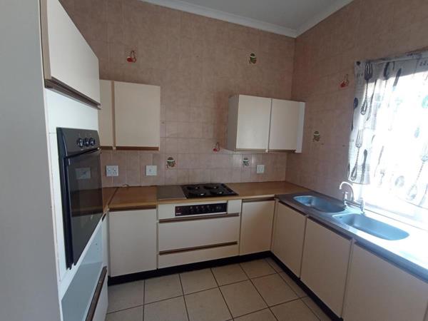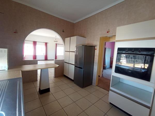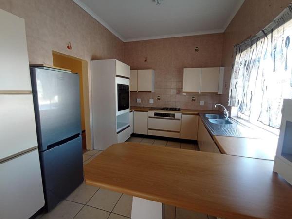 The upper level welcomes you with a cozy reception area that flows into an expansive open-plan lounge, ideal for a formal living area, TV lounge, dining space, and even a bar section, should you desire. The fully tiled kitchen is fitted with Melamine countertops and space for a single fridge. This level boasts 3 carpeted bedrooms, including a spacious main suite with a private en-suite bathroom and a dedicated dressing area.