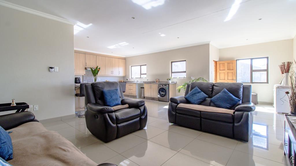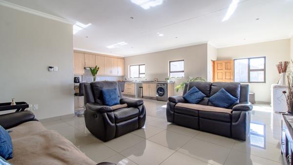 Step inside and youre welcomed by light-filled interiors and an open-plan layout that creates an inviting sense of space. The lounge flows seamlessly into a contemporary, fully fitted kitchen finished with sleek granite countertops, an electric oven and stove, and abundant storage. It is a space designed to inspire, whether youre preparing a family meal or entertaining guests.