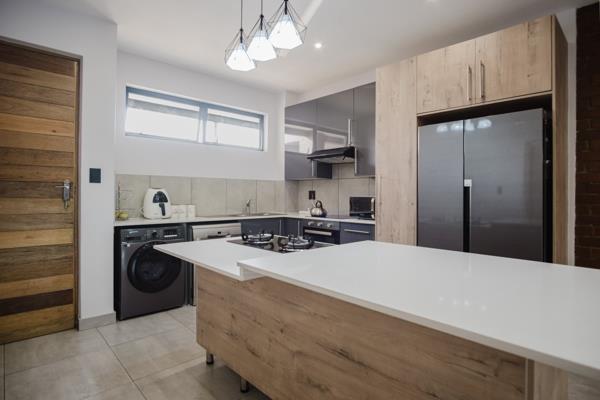 Experience the epitome of luxury and style in this stunning ground floor unit that redefines modern living. Offering expansive living areas that seamlessly flow onto an enclosed patio complete with a built-in braai, this home is perfect for entertaining or simply enjoying the tranquility of lush gardens.