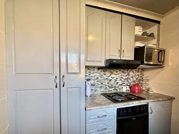 Enter through a bright and welcoming lounge that flows seamlessly into the open-plan kitchen creating a warm and connected living space ideal for relaxing or entertaining. This beautiful unit is neatly tiled with elegant porcelain right throughout and the kitchen offers a four-plate stove, oven, extractor and designated compartment spaces for a fridge and washing machine or dishwasher perfect for easy, modern living.