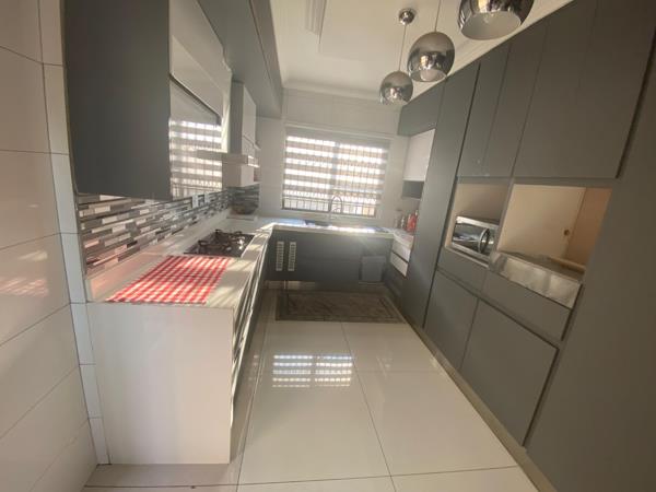 The main house features three generously sized bedrooms, each fitted with sleek, modern built-in cupboards BICs that provide ample storage space. The propertys fully tiled interior is both practical and stylish, with a neat, polished aesthetic. The modern kitchen is equipped with built-in magnetic cupboards, making cooking and storage efficient and organized.