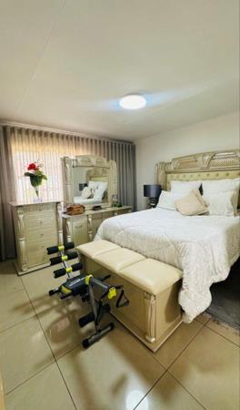 Discover this inviting four bedroom, family home located in the metropolitan suburb of Ormonde, Johannesburg. Boasting an Erf and floor size of 346 sqm, this property offers comfortable living within a secure complex. The exterior presents a welcoming facade with a prominent wooden panel garage door and a clearly displayed address, hinting at the quality within.