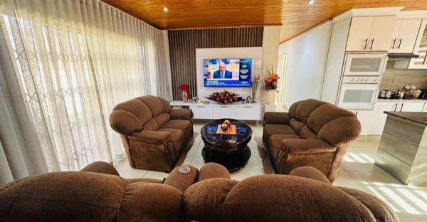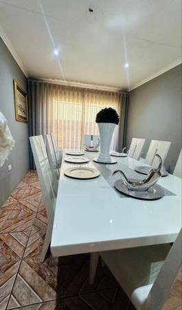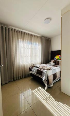 Outdoor amenities include a double garage providing secure parking for two cars and a garden for relaxation. Security is enhanced with burglar bars on windows ensuring peace of mind. The property also benefits from fiber connectivity, supporting modern digital lifestyles.