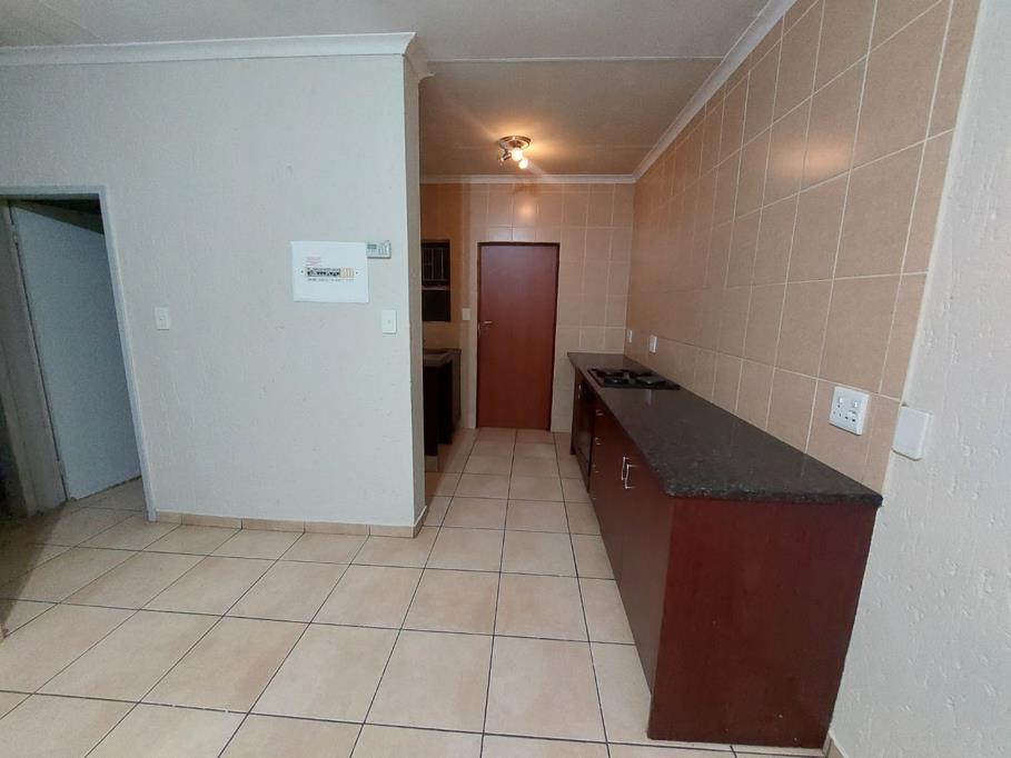Secured in a gated estate with features that will truly impress, meet this 1st floor 2 bedroom Apartment in a quiet and peaceful neighborhood in the southern of Johannesburg. Offers an open plan kitchen kitchen with plenty of cupboard space, granite tops, hob and a washing machine connection. The kitchen is adjacent to the spacious lounge that brings plenty of sunlight light leading to the sliding door window. style walling and a tiled surface area. 2 neat and spacious bedrooms with built in cupboards. Also offers: carpet flooring
