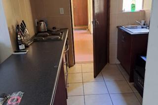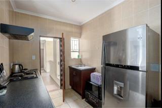 Modern second floor neatly tiled unit with 2 bedrooms, 1,5 bathrooms, open plan lounge and kitchen with lovely built-in cupboards and lots of space for appliances. 1 Designated covered carport. Well-kept complex with communal garden and braai area.